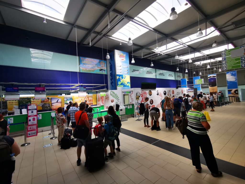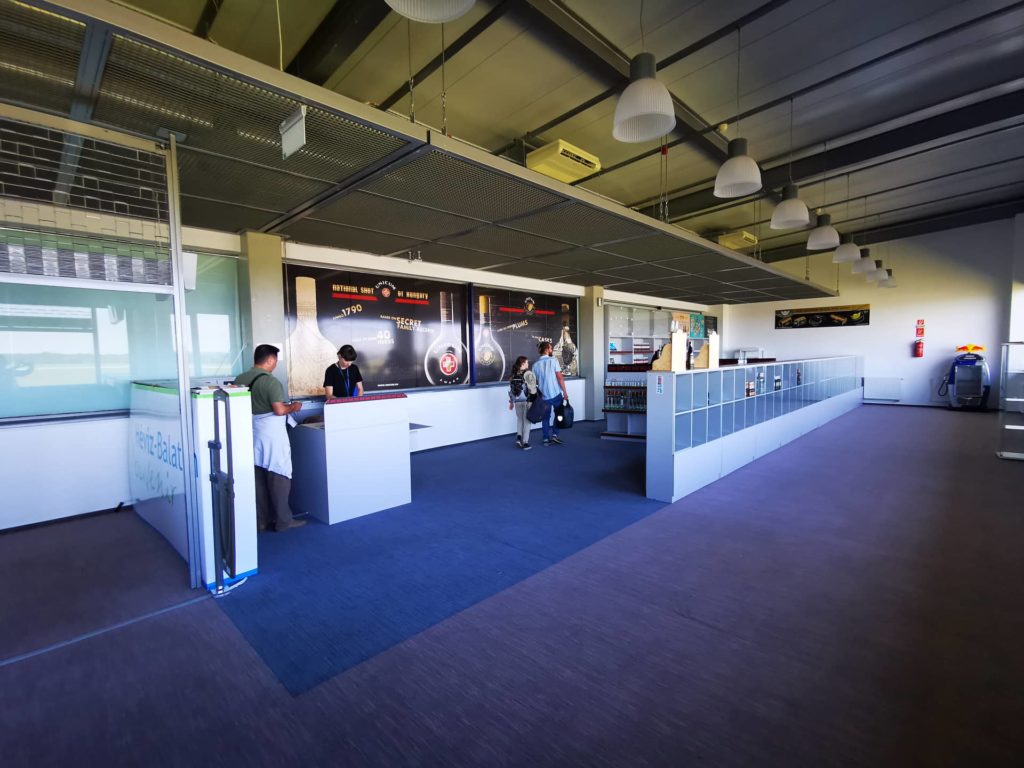 Auch die Ankunft ist extrem überschaubar. Am kleinen und einzigen Kofferband wird schnell das Gepäck ausgeliefert und drei Schritte weiter ist man auch schon angekommen. An einem Mietwagenschalter können Fahrzeuge gemietet werden und ein Shuttlebus fährt die Orte Keszthely, Gyenesdias und Héviz an. Der direkt vor dem Flughafen liegende Parkplatz ist derzeit kostenlos.