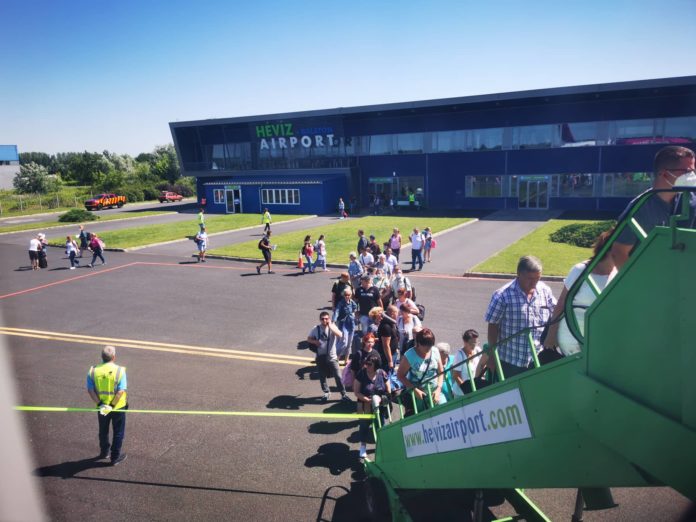 Mittlerweile ist am Sonntag bereits die zweite Maschine auf dem kleinen Balaton Flughafen gelandet. Ein Erfolg, denn die Maschine war auf dem Hin- sowohl auch auf dem Rückweg sehr gut gebucht. Viele deutsche Touristen im Flieger, die sich auf erholsame Wochen in Ungarn freuen.