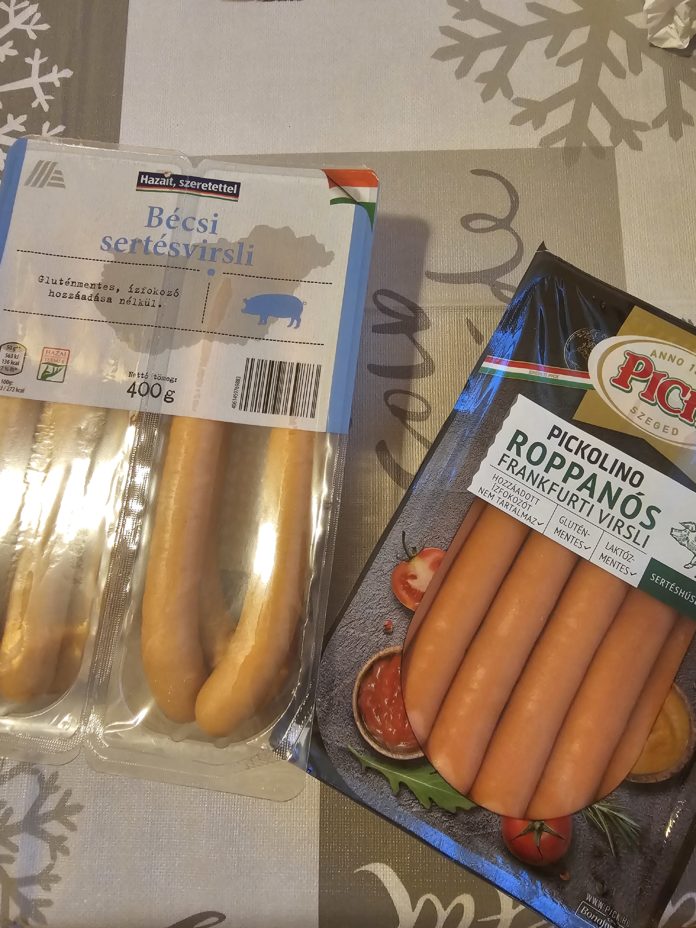 Auch typisch: Virsli (die Bockwurst). Die gekochten Würstchen gehören in Ungarn auf die Silvesterparty und sind beliebt an diesem Abend. In den Geschäften hat man sich auch in diesem Jahr schon gut gerüstet und die Wurstregale waren gut gefüllt.
