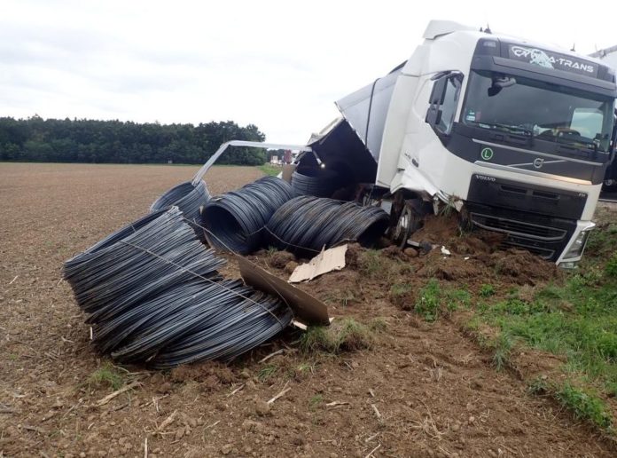 Ein LKW kam aus bisher nicht geklärter Ursache am Mittag von der Fahrbahn ab auf der Hauptstraße 86 in der Nähe von Kisunyom. Das Gefährt geriet dabei in den Graben und blieb dort halb auf der Seite liegen. Bei dem Manöver löste sich die Ladung und bracht durch den Anhänger. Mehrere Stahlseilrollen verteilten sich auf der Unfallfläche rund um den LKW. Die Feuerwehr musste die technische Bergung unterstützen. der Fahrer wurde verletzt ins Krankenhaus gebracht. Die Strasse für mehrere Stunden gesperrt.
