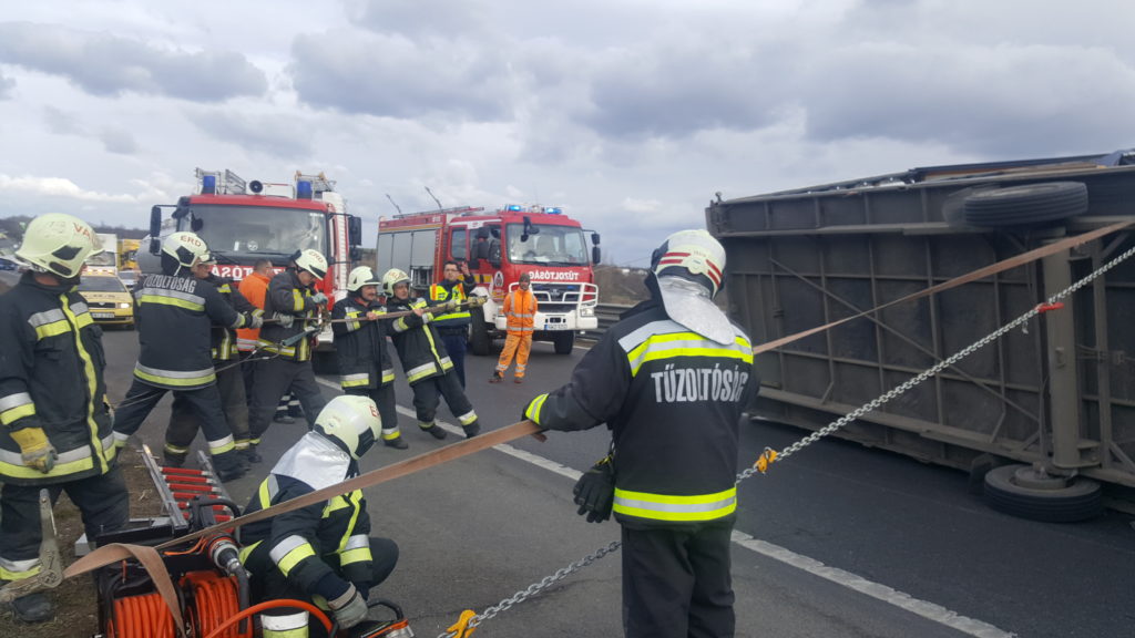 Die Feuerwehr aus Érd brachte das nach einer aufwendigen bergungsaktion wieder auf die Räder. Der betreffende Straßenabschnitt wurde während der Bergung mehrere Stunden gesperrt.