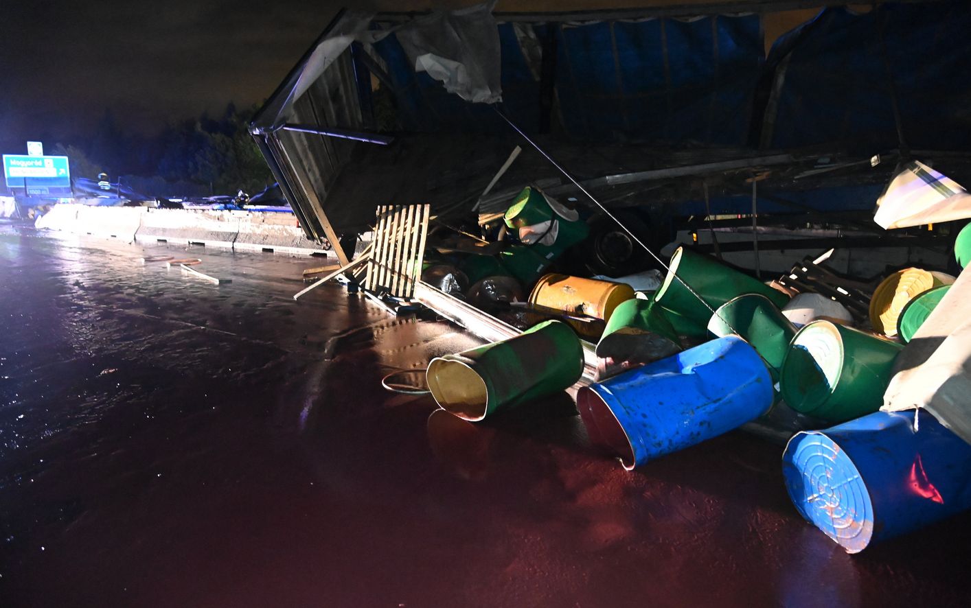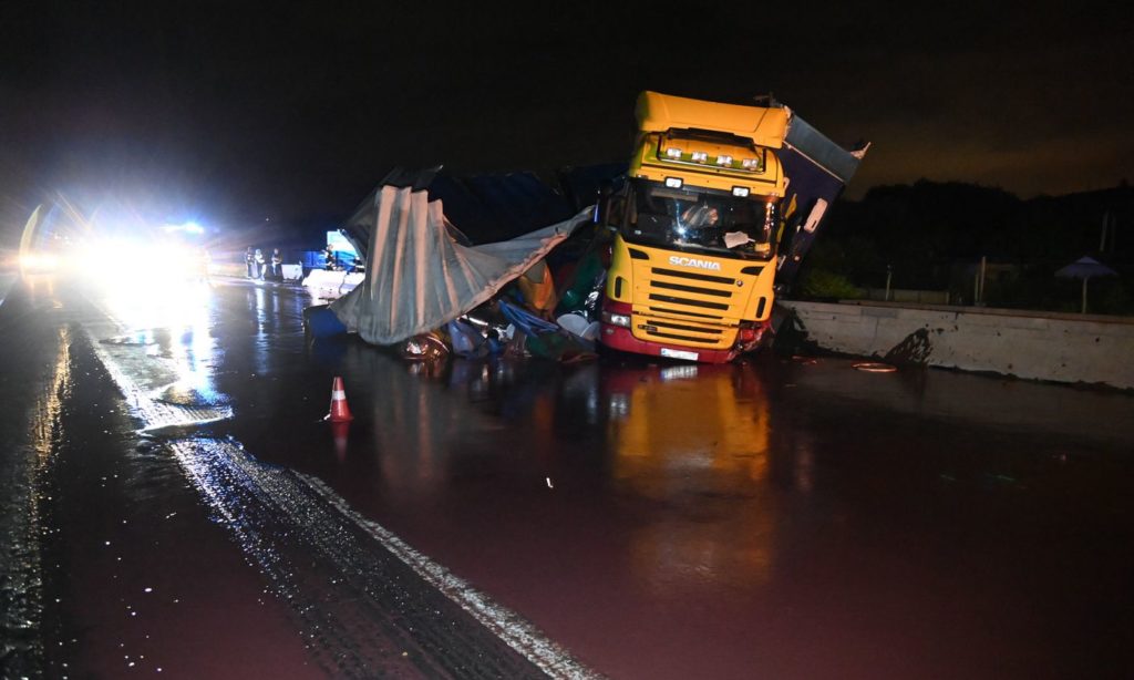 Am Morgen ist ein LKW mit einer Ladung Kirschsaft auf der M3 bei Mogyoród umgekippt. Bei dem Unfall ist der Anhänger auf der Seite liegengeblieben und die Ladung mit Kirschsaft hat sich über die gesamte Fahrbahn verteilt. Die Feuerwehr musste die Fahrbahn reinigen und den LKW samt beschädigter Kirschsaftbehälter bergen. Die Autobahn war mehrere Stunden gesperrt. Der LKW-Fahrer wurde verletzt ins Krankenhaus gebracht.