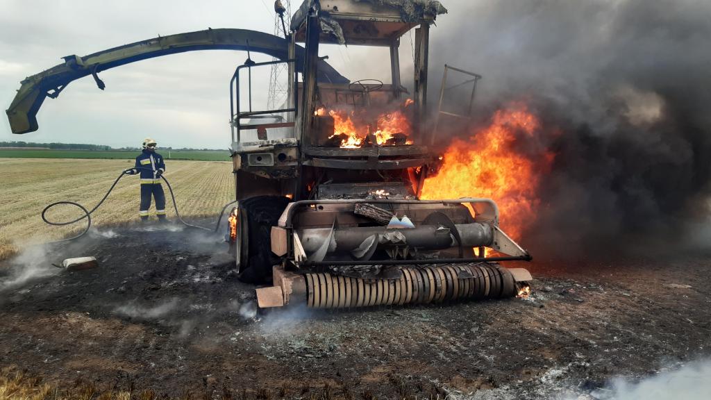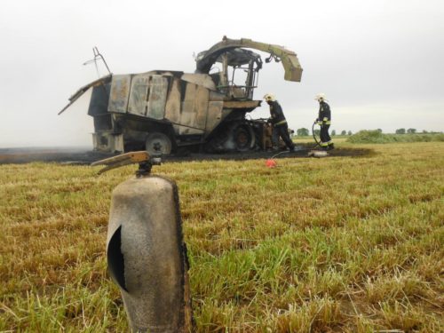 Ein Mähdrescher hat gestern Nachmittag am Stadtrand von Hajdúböszörmény Feuer gefangen. Vor der Ankunft der Feuerwehr begannen die Arbeiter die Flammen mit fünf Pulverlöschern zu löschen, Die Feuerwehr übernahm die Brandarbeiten dann mit Schaumlöschern. Bei dem Brand wurde niemand verletzt! Die Maschine wurde dabei zerstört.