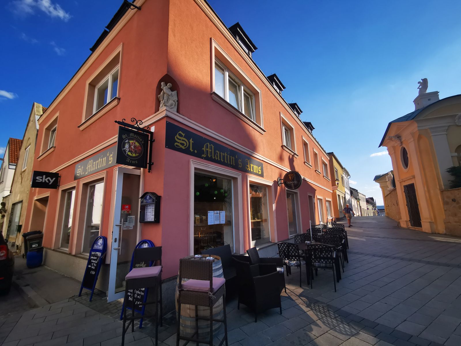Eisenstadt, ein schönes Städtchen in Österreich unweit der ungarischen Grenze. Neben Schloss und schmucken Kirchen hat die Stadt noch etwas ganz besonderes zu bieten… Ein Stückchen England oder auch Irland…wer hätte das gedacht…In ganz präsenter Lage befindet sich ein richtiger Pub – Der St. Martins Arms Pub und Cafe. Wer es einfach mal britisch oder irisch mag ist hier sehr gut aufgehoben. Die saisonale Speisekarte hat einiges zu bieten und ist ein kulinarischer Leckerbissen. (übrigens wurde auch die österreichische sowie ungarische Küche bedacht)