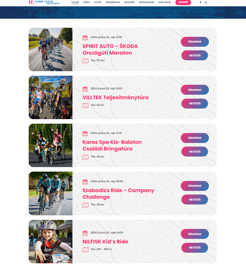 Eines der beliebtesten Straßenradrennen Ungarns wird auch 2024 wieder stattfinden und mit seiner fantastischen Atmosphäre zahlreiche Teilnehmer anlocken. Am 22. und 23. Juni startet der Straßenmarathon in Zalakaros und führt auf verkehrsarmen Straßen durch die schönsten Ecken der Zalaer Landschaft. Ziel der Veranstaltung ist es, den Radsport zu fördern, indem ungarischen und ausländischen Radfahrern die Möglichkeit geboten wird, an Rennen, Wanderungen und Marathonläufen teilzunehmen. Auch diejenigen, die noch nie an einer Radsportveranstaltung teilgenommen haben, sind herzlich willkommen.