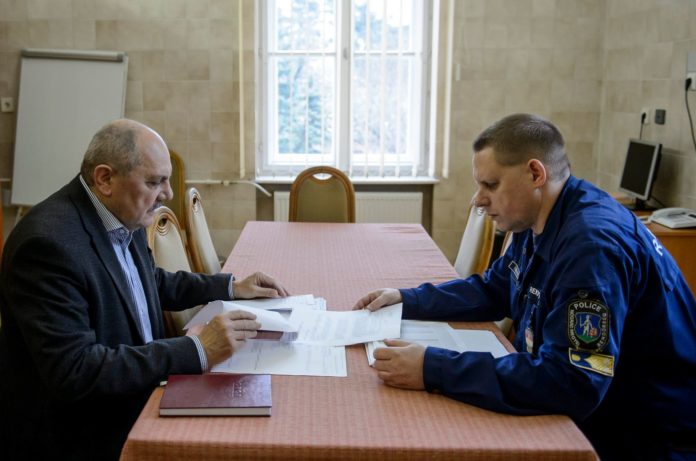 Géza Szabó Generaldirektor und Oberstleutnant Bertold Fábián, Chef des Krankenhauses, am 30. März 2020 in einem Büro des Dr. Kenessey Albert Krankenhauses und der Klinik in Balassagyarmat. Ab heute wird jedes Krankenhaus von militärischen Führungskräften unterstützt um somit die Gesundheitsversorgung zu gewährleisten. Es liegt in der Verantwortung der Krankenhauskommandanten, die Aktivitäten der Krankenhäuser bei der Bewältigung des Coronavirus-Ausbruchs zu unterstützen. Sie dürfen jedoch keine Entscheidungen in medizinischen Angelegenheiten treffen. Speziell die Besorgung und somit die Logistik von Gesundheitsmaterialien wird von den militärischen Fachabteilungen unterstützt.