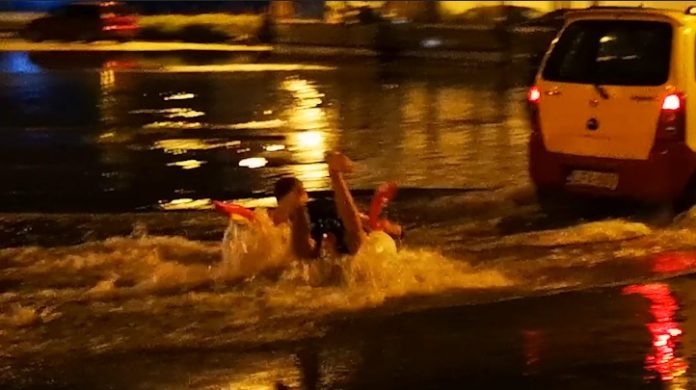 Az elmúlt hétvége extrém időjárása új sportot hozott létre. A tavak környékéről ismert vizisí, most már a parkolókban is hódít. Zalaegerszegen egy hatalmas unikornis úszógumi hasította a vízet, mindezt az egyik nagyáruház parkolójában.