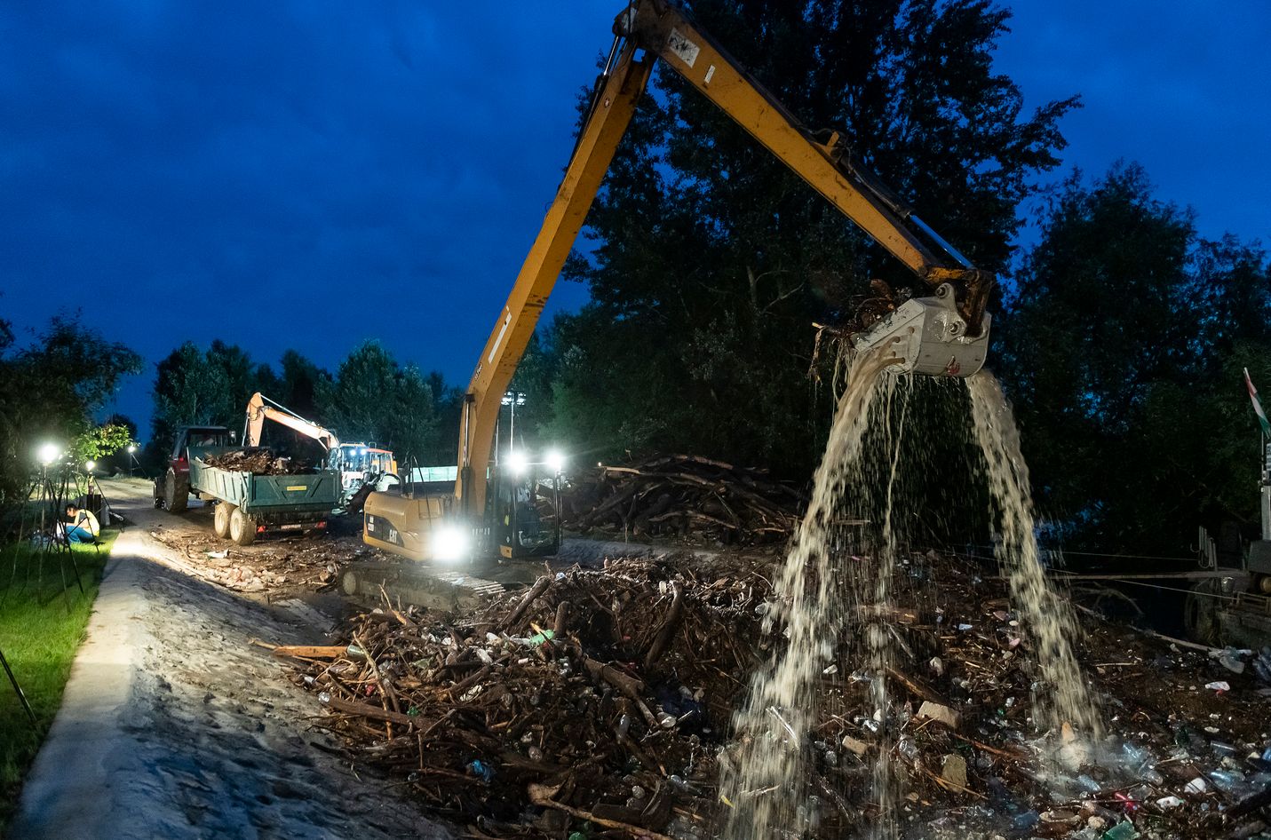 Im Fluß Samos zum Abfluß über den Theiss-Fluss hat sich durch das Hochwasser jede menge Unrat angesammelt, sodaß die obere Theiss-Wasserbehörde eingreifen musste in der Nacht. Mit schweren baggergeräten musste der Unrat aus dem Flußbett geholt werden. Besonders heftig am Flussufer in Olcsván.