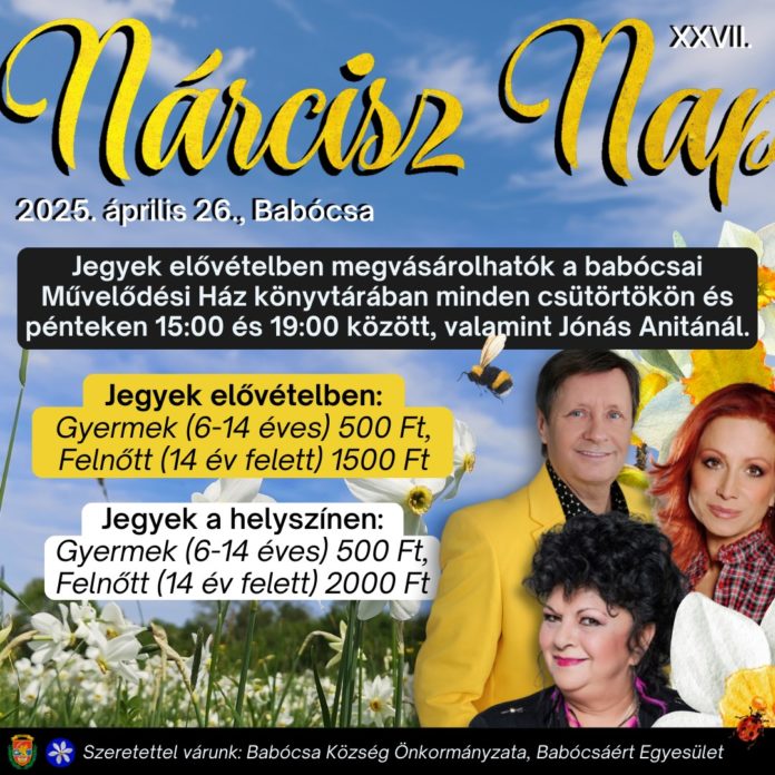 Am 26. April findet in Babócsa der Narzissentag anlässlich der Blüte des größten zusammenhängenden Narzissenfeldes Europas statt.