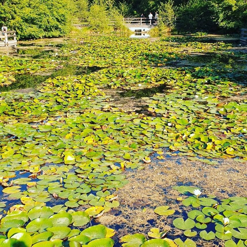 Beeidnruckend gerade auch der grosse Seerosenteich in dem noch zahlreiche Seerosen in der Blüte stehen.