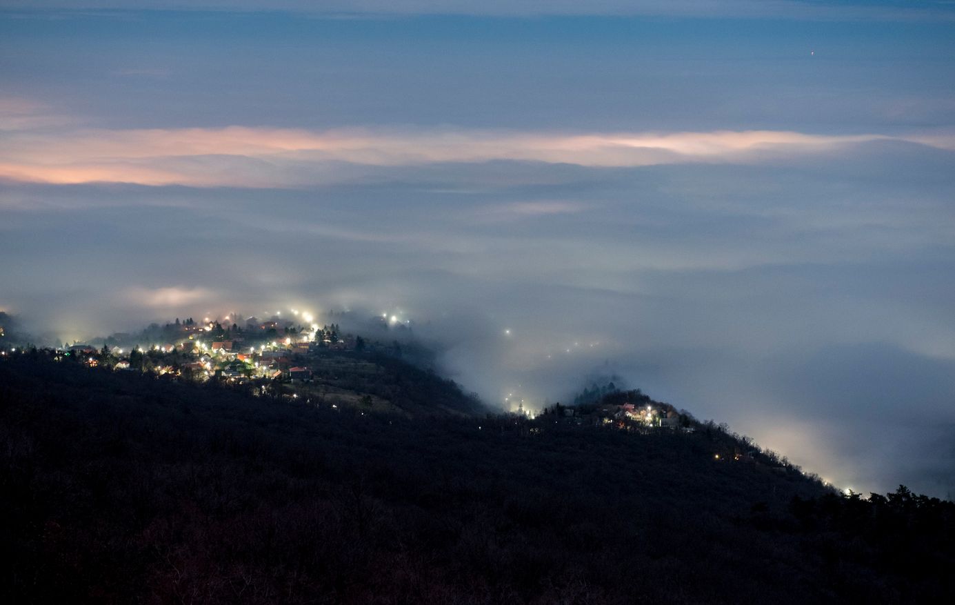 Nebel über dem Stadtteil Deindol von Pécs. Ein wunderschönes Naturereignis am Morgen. das wurde wurde von Sóki Tamás/MTI erstellt.