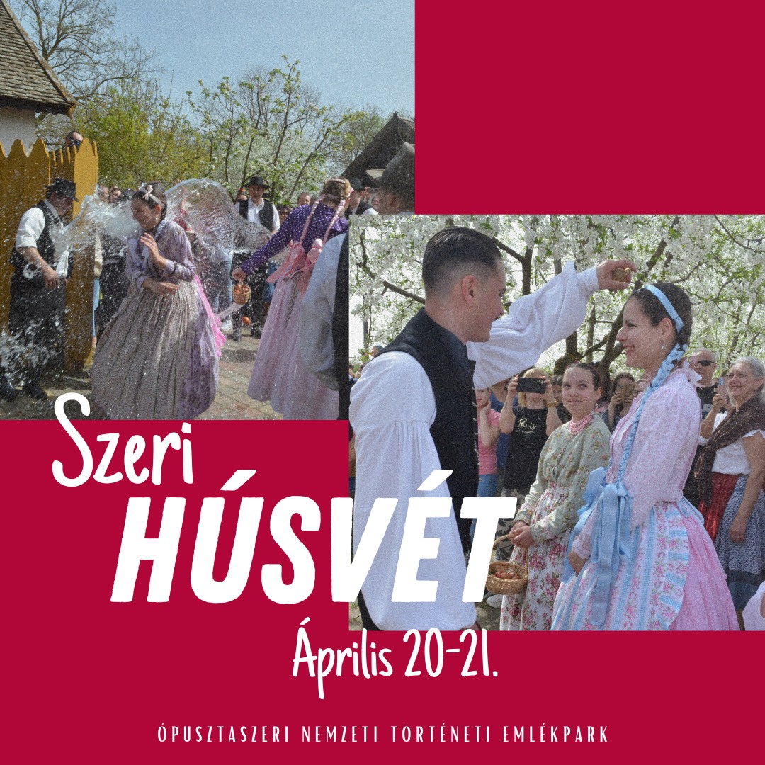 Am Ostermontag erfahren Besucher beim Spaziergang durch das Freilichtmuseum und beim Betreten der einzelnen Bauernhöfe, wie man das perfekte Osterbrot bäckt. Im Hof des Szeged-Alsóváros-Hauses lädt das Lächelhof-Spielhaus zum Mitmachen ein, wo Kinder bei Bastelaktivitäten kleine Geschenke gestalten können. Am Vormittag können die Kleinen im Freilichtmuseum Ostereier suchen. Nach dem Mittagsläuten werden an der Ányási-Kapelle Osterbrot, Schinken und Eier gesegnet – ganz nach alter Tradition. Den krönenden Abschluss bildet das spektakulärste Element des Festes: das Oster-Bespritzen, bei dem Burschen in Tracht mit Wassereimern die Mädchen in den Bauernhäusern besuchen.