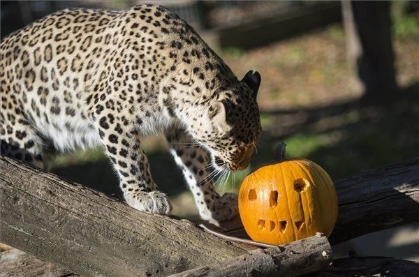 Dieser persische Panther im Zoo von Nyíregyháza braucht sicherlich keine Angst vor der „schrecklichen” Halloweennacht zu haben. Vielmehr interessiert er sich für das Fleisch, dass hier im Kürbis versteckt wurde.
