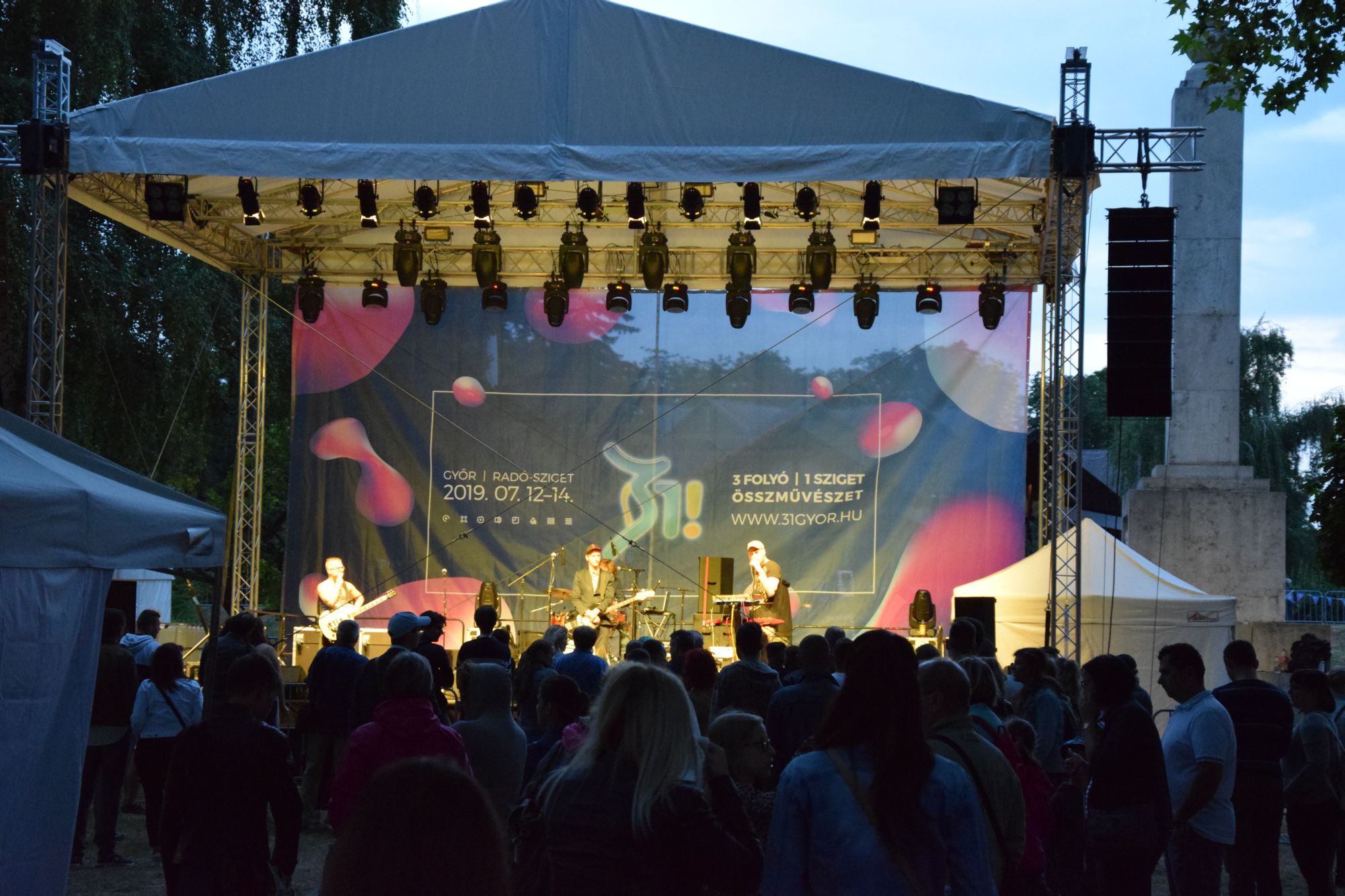 Neben der Kunst die das Auge wahrnimmt, stand auch die Kunst für das Ohr auf dem Programm beim Event unter dem Motto „3 Flüsse 1 Insel“ in Györ. Am Samstagabend strömten Tausende Besucher zu dem Event auf der Halbinsel in der Stadt und liessen sich auch von den Rythmen verschiedener Bands oder Gruppen in kunstvolle Klänge ziehen. Stimmung: Perfekt und ausgelassen mit Chill-Faktor.