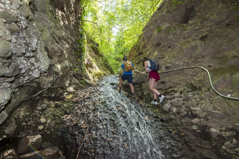 Im Felsbett gurgelt ständig das Wasser, das bei der Schneeschmelze und bei starken Regenfällen zu einem Bach anschwellen kann. In der Schlucht müssen Wanderer einen Höhenunterschied von 112 Metern überwinden.