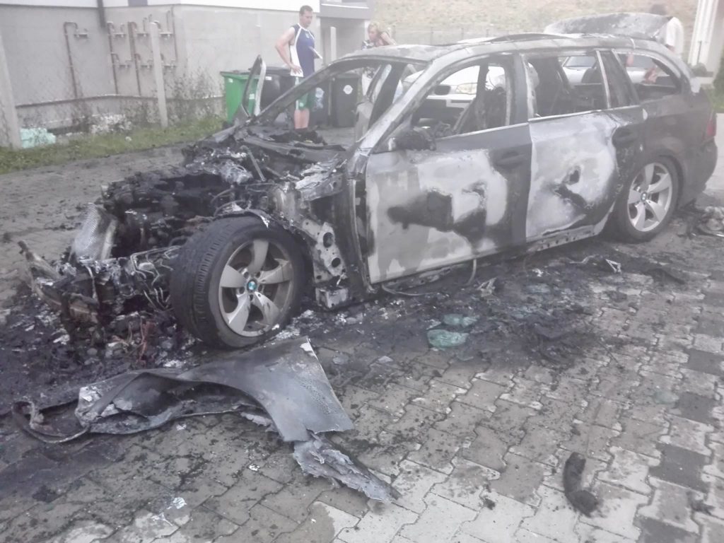 Dramatische Sekunden gestern Abend in der Ady Strasse in Györ. Eine Frau will mit ihrem BMW Kombi aus der Ady Strasse fahren als sie plötzlich bemerkt, daß sich im Innenraum des Wagens starker Rauch entwickelt. Schnell steigt sie aus dem Fahrzeug aus. In sekundenschnell steht der ganze Wagen in Vollbrand!