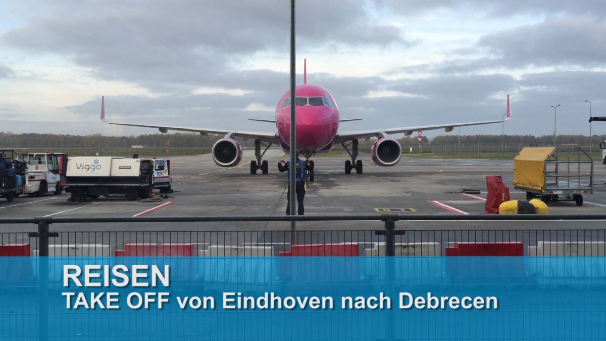 Wir starten heute mit einem Airbus A-320 von Eindhoven nach Debrecen. Der Flughafen Eindhoven ist der größte Regionalflughafen Hollands. Wizzair fliegt regelmässig von Eindhoven nach Debrecen und Budapest in Ungarn. Eindhoven ist von Düsseldorf in rund einer Stunde zu erreichen. Gute Parkmöglichkeiten am Flughafen Eindhoven und ein sehr übersichtliches Terminal machen das Reisen von Eindhoven zur Alternative. Auch andere Low Cost Airlines fliegen von Eindhoven verschiedene europäische Ziele an.