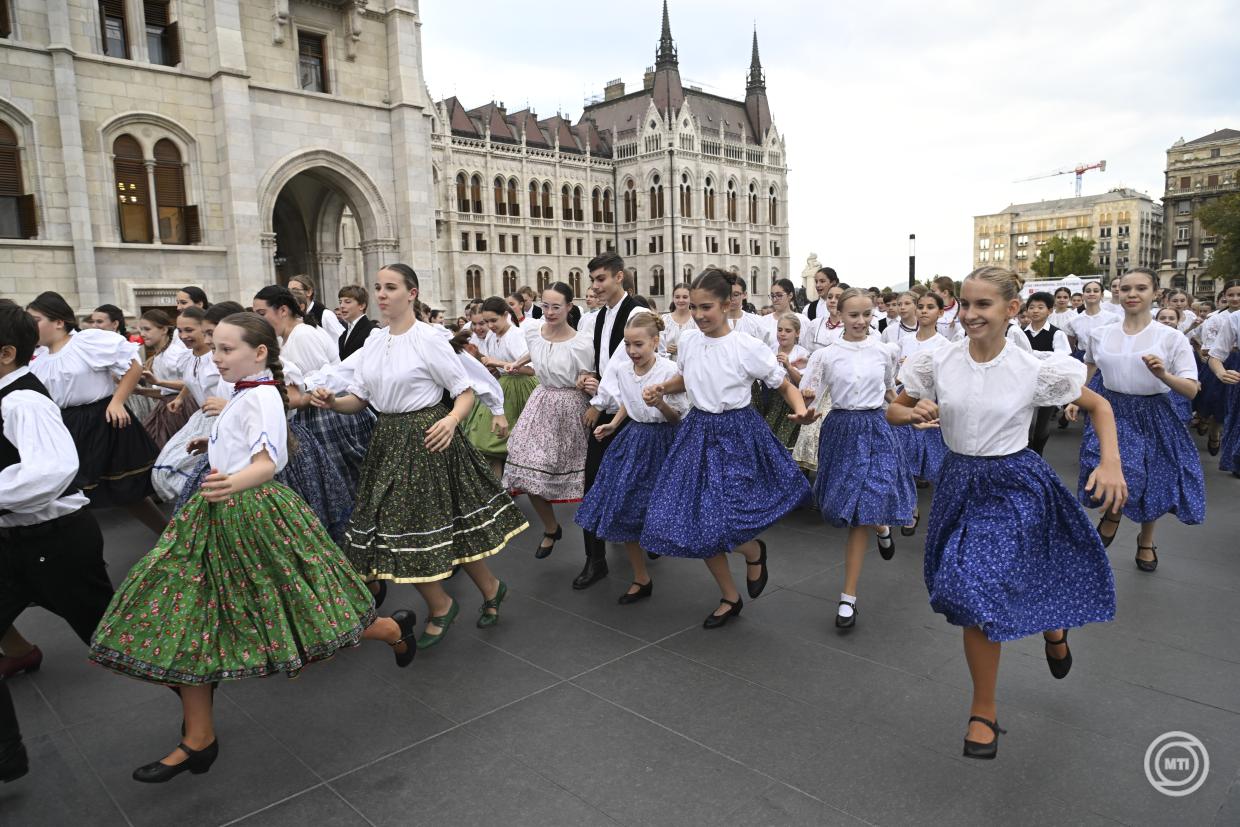 Vor dem Parlament tanzten 10- bis 14-jährige Kinder gleichzeitig nach einer gemeinsamen Volkstanz-Choreografie. Anschließend begann ein moldawisches Csángó-Tanzhaus, dem sich jeder auf dem Kossuth-Platz anschließen konnte, teilte die stellvertretende Staatssekretärin des Ministeriums für Kultur und Innovation (KIM) mit, die für die Jugend verantwortlich ist. Sie betonte, dass die Veranstaltung die Kraft des Tanzes eindrucksvoll demonstriert habe.