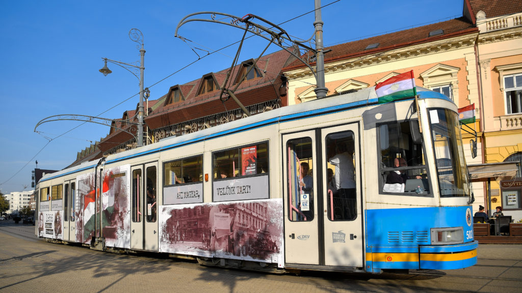 In Debrecen fährt eine Strassenbahnlinie ganz im Zeichen der revolution. Die Straßenbahn ist eine Kuriosität, die die Stadt vor der ungarischen Revolution vor 63 Jahren ehrt.