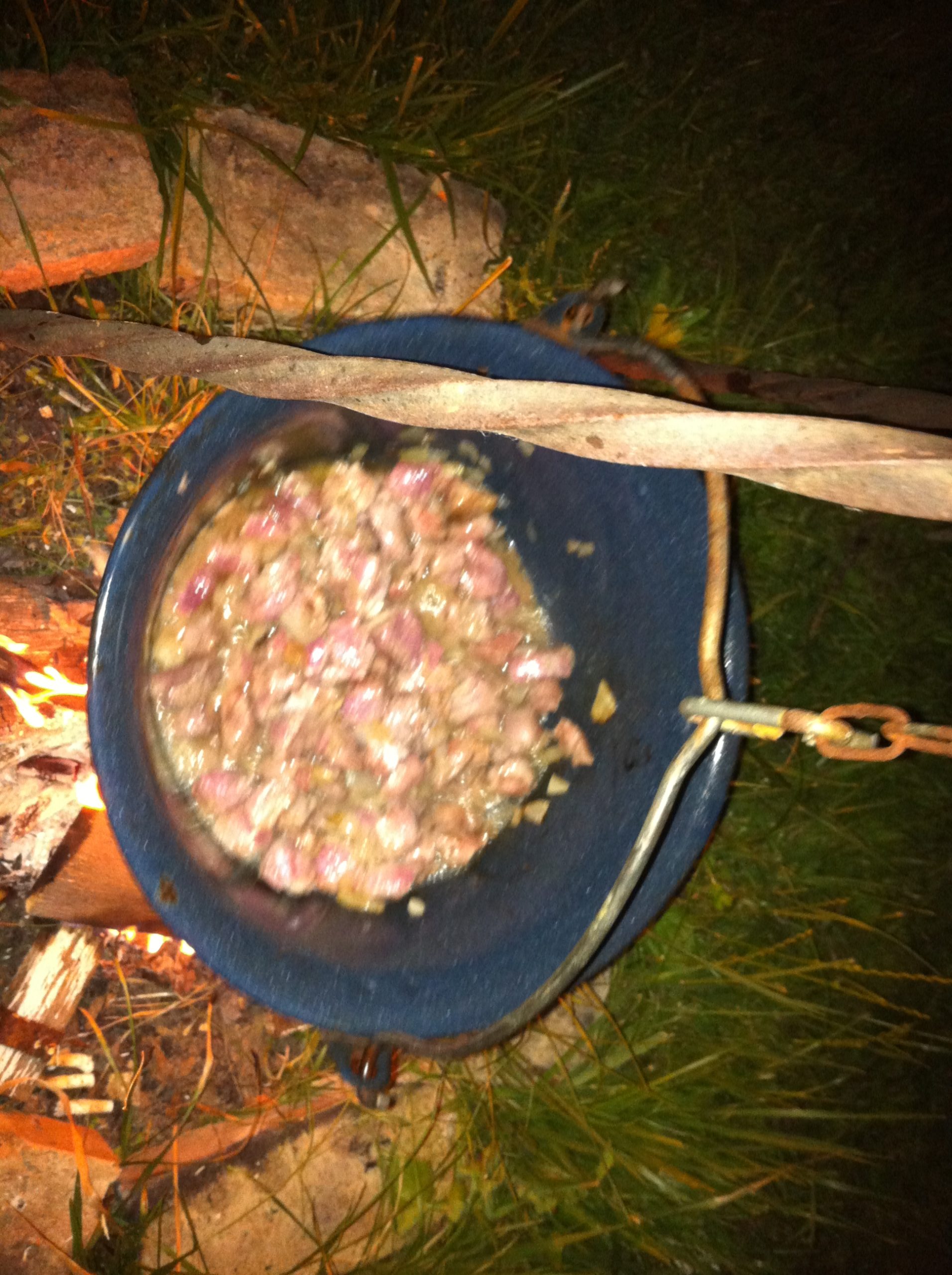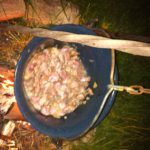 Immer wieder mit etwas Wasser (1 dl) aufgiessen und cirka anderthalb Stunde lang kochen (bis das Fleisch weich wird). Zuletzt die in Scheiben geschnittenen Kartoffeln zugeben, mit Wasser aufgiessen (so dass die Kartoffeln eben bedeckt werden) und das Ganze kochen lassen, bis die Kartoffeln erweichen.
