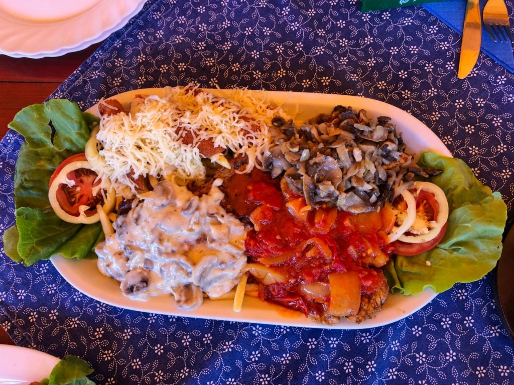 Viel Platz in gemütlicher Csarda-Atmosphäre. Die Gerichte: reichlich und aus guter ungarischer Küche.