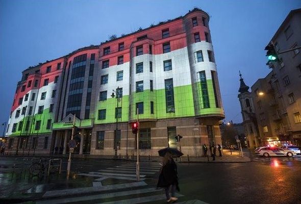Schön bunt: Ungarische Lichtspiele in Budapest zum Nationalfeiertag