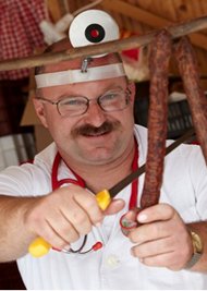 Der Tradition nach kann man die vor Ort gebratenen Schweinespezialitäten