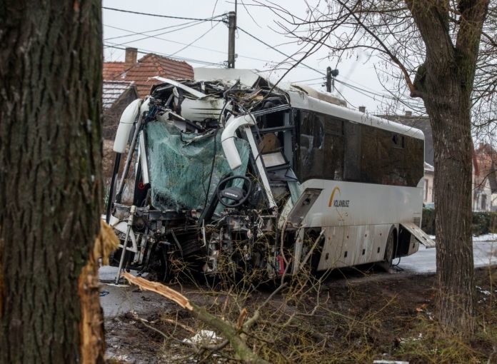 Am Morgen kollidierte ein Linienbus im Bereich des Marktplatzes von Lörinci mit einem Baum. Durch den heftigen Aufprall wickelte sich der vordere Teil des Busses regelrecht um den Baum. Der Fahrer sowie fünf Fahrgäste wurden schwerverletzt ins Krankenhaus gebracht. Der Strassenbereich war für mehrere Stunden voll gesperrt und Feuerwehr sowie Bergungsunternehmen haben das Gefährt gesichert und abtransportiert. Die Polizei führt nun weitere Untersuchungen durch, wie es zu dem Unfall kommen konnte.