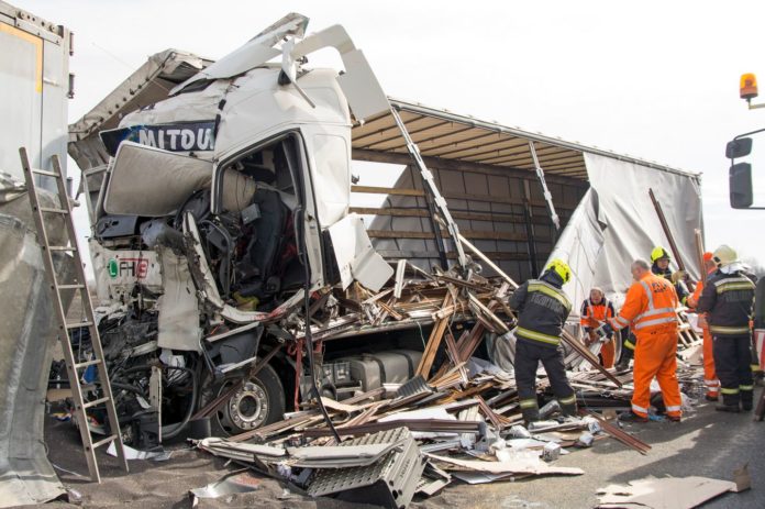 Gleich vier LKW waren in einen schweren Auffahrunfall auf der Autobahn M1 in Richtung Hegyeshalom verwickelt. Bei dem Unfall kollidierten vier Lastwagen und schoben sich regelrecht aufeinander auf. Einer der Fahrer wurde sofort bei dem Unfall getötet. Weieter Fahrer wurden teils schwer verletzt. Der betroffene Abschnitt der Autobahn war für die Zeit der Bergung und Rettung auf der vollen Breite gesperrt. Es kam zu großen Verkehrsbehinderungen in dem Bereich.