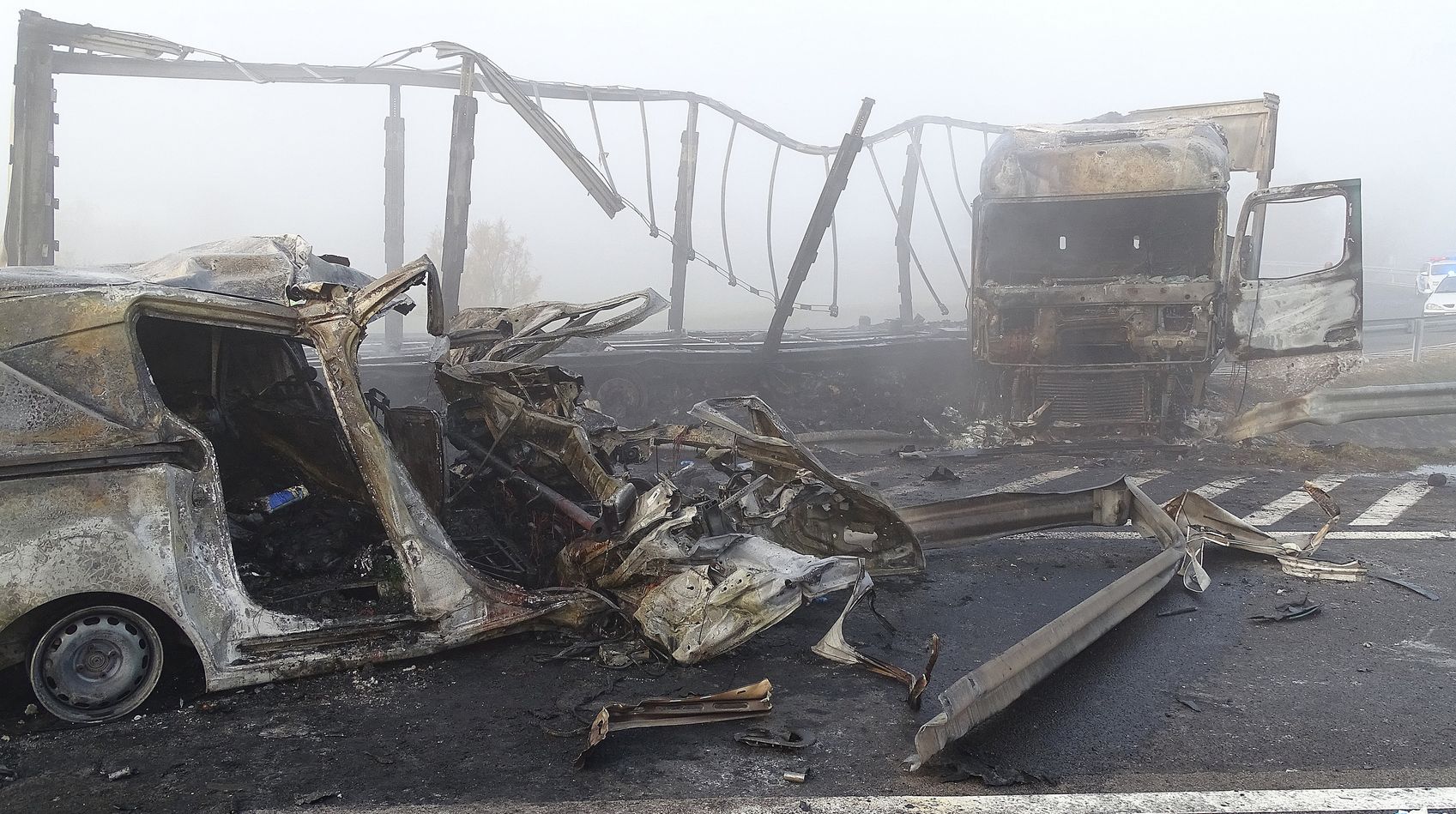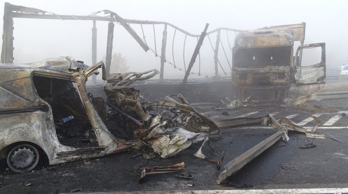 Am frühen Morgen starben 7 Menschen bei einem schweren Verkehrsunfall auf der ungarischen Autobahn M5 bei Kistelek. Ein LKW, der Richtung Budapest unterwegs war, durchbrach aus bisher unbekannten Gründen die Mittelleitplanke und kollidierte frontal mit 2 PKWs auf der Gegenseite. Die Fahrzeuge fingen sofort Feuer. Alle 7 Insassen der PKWs starben noch am Unfallort. Der LKW Fahrer blieb unverletzt. Die Autobahn ist in beide Richtungen komplett gesperrt.