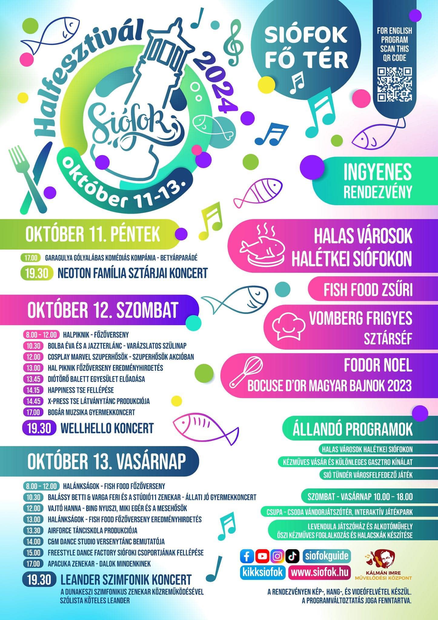 Der Hauptplatz der Stadt wird wieder mit Leben, Musik und einzigartigen Fischgerichten erfüllt. Unterhaltung ist für jede Altersgruppe garantiert: Kinder können sich auf Auftritte der Garagulya Stelzen-Komödiantengruppe, Bolba Éva & JAZZterlánc, Balássy Betti & Varga Feri mit dem Studio 11 Orchester, Hanna Vajtó, Marvel-Cosplay-Superhelden, Bogár Muzsika und das Apacuka Orchester freuen. Außerdem gibt es interaktive Fischworkshops auf dem Wunder-Vanderspielplatz und im Lavendel-Spielhaus und Kreativatelier.