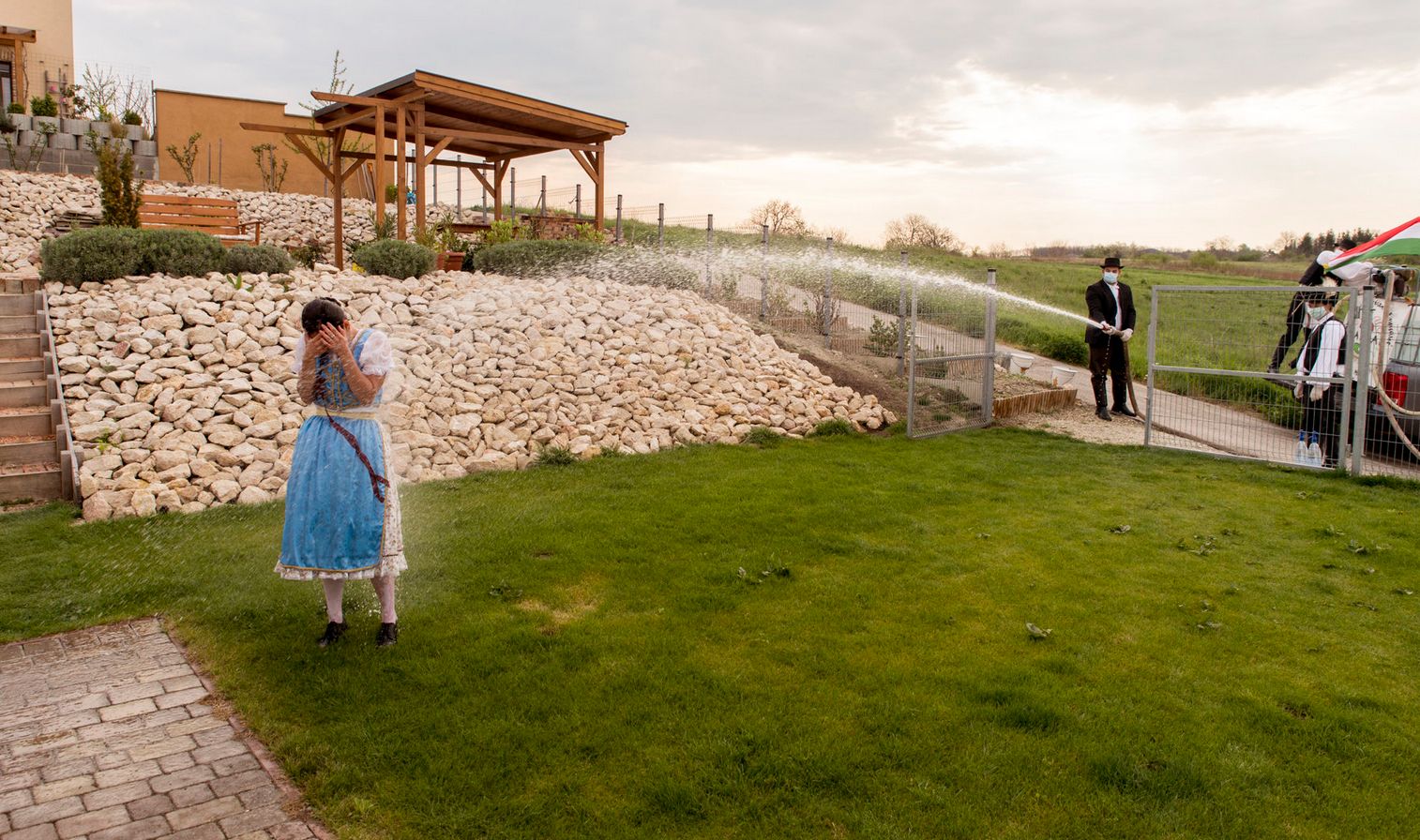Ostern mit Abstand…Soziale Kontakte vermeiden. Darunter leidet dann auch die Tradition des „Begiessens“ in diesem Jahr in Ungarn. Doch die jungen Mitglieder der Marcal Dance and Folk Art Association – hatten die richtige Idee…Begiessen mit genügend Abstand. Aufgrund der Coronavirus-Epidemie gingen sie mit einer medizinischen Mundmaske und mit Gummihandschuhen „bewaffnet“ und im richtigen Abstand – zu einem Mädchen ihrer Wahl und begossen aus der Ferne…Mit einem Schlauch. Wasser Marsch hiess es dann und das Begiessen hatte in diesem Fall fast die alte Tradition wieder…mit einer ordentlichen Menge Wasser. Das Mädchen schickte den Jungs dann einige Eier…natürlich kontaktlos, in den sozialen Medien. So geht also „Begiessen“ oder „Bewässern“ in Zeiten von Coronavirus.