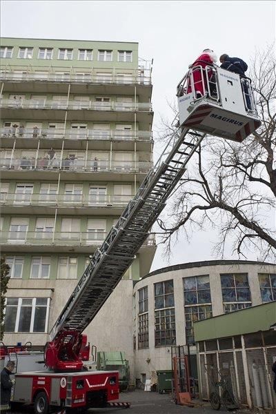 Der Nikolaus hatte gestern viel zu tun. Bei seinem Besuch in einem Budapester Kinderkrankenhaus bat er die Kollegen von der Feuerwehr, ihm auf den letzten Metern mit einer Drehleiter zu helfen, was natürlich sofort geschah. Ein spektakulärer Einsatz des Nikolauses!