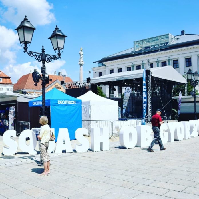 Am Wochenende trafen sich zahlreiche Sportler in Györ um bei der Landesmeisterschaften im Squash teilzunehmen. Der Austragungsort diesmal spektakulär mitten auf dem Hauptplatz in Györ. Somit rachte man auch einige Zuschauer für die doch eher seltenere Sportart heran. Bei warmem Wetter wurde ordentlich geschwitzt. Übrigens wurden auch Dart und Tischtennisturniere durchgeführt. Ein sportliches Wochenende mitten auf dem Hauptplatz.
