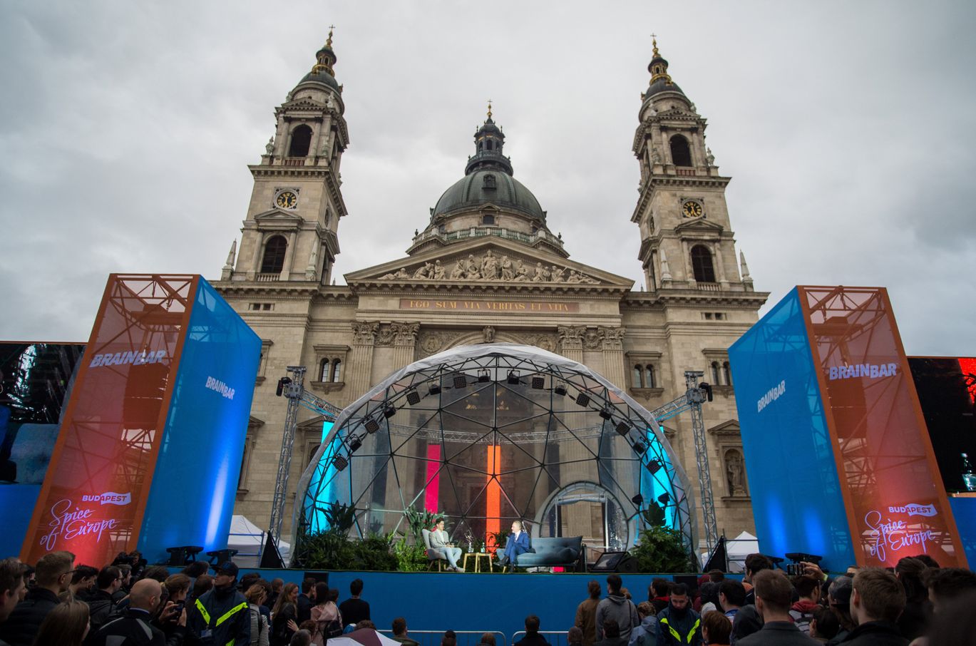 Jordan Peterson Starpsychologe trat an dem Brain Bar Future Festival in Budapest vor der St.-Stephans-Basilika gestern abend auf.Ein interessanter Talk und sinniges Gespräch stand auf der Tagesordnung. Trotz des schlechten Wetters interessierten sich viele Menschen für die „Talkshow“ outdoor.
