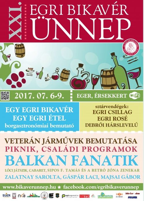 Ein Weinfest mit viel Drumherum in Eger am kommenden Wochenende vom 07.-09. Juli 2017. Neben dem herrlichen „Stierblut“ – ein besonders guter Tropfen aus der Weinregion Eger, kann man in Eger am kommenden Wochenende einiges mehr erleben. Gastronomische Highlights gemischt mit musikalischen Hits und jeder Menge Entertainment. Auch eine Traktorshow und Umzug ist im Programm enthalten. Also ein Event für die ganze Familie in einer reizvollen Gegend rund 120 KM von Budapest entfernt.