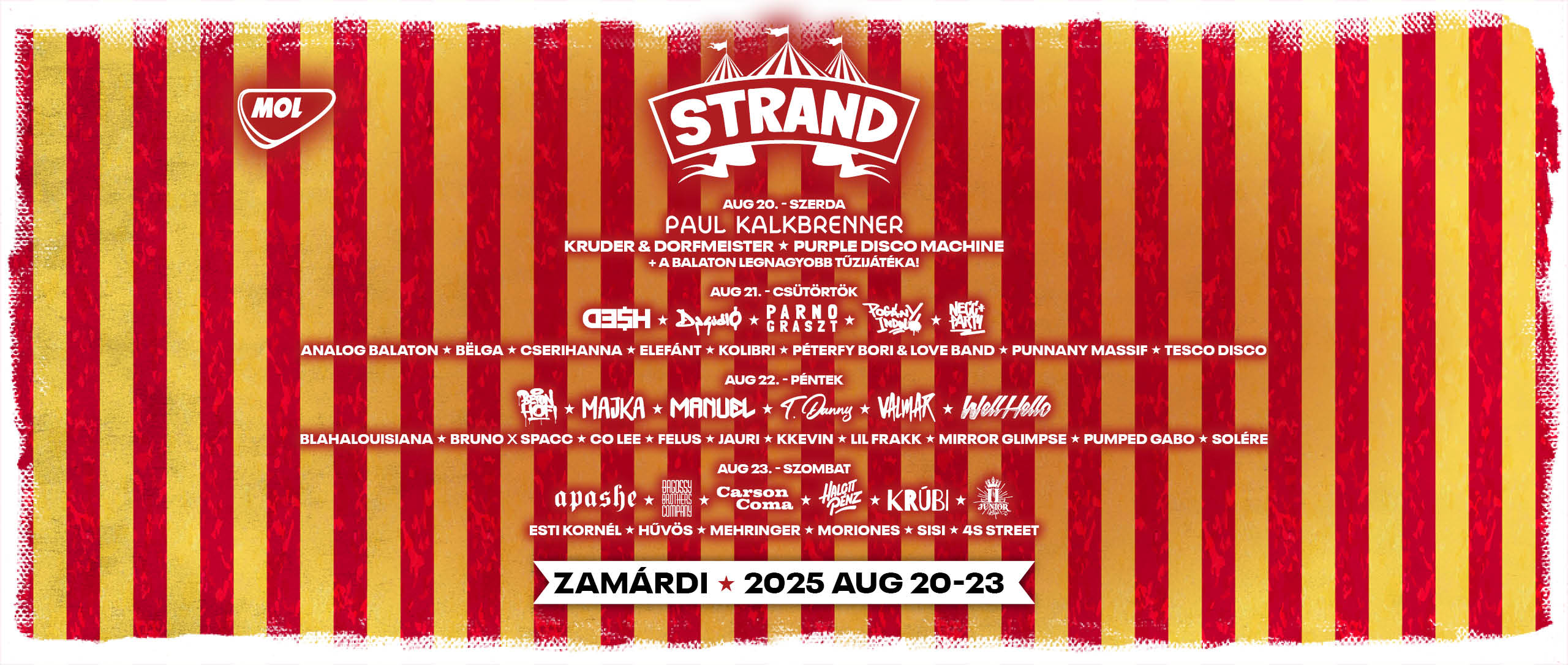 Auf den drei Hauptbühnen und zahlreichen weiteren Locations treten zudem Dzsúdló, Parno Graszt, Majka, Halott Pénz, Pogány Induló, Manuel, Valmar, Beton.Hofi, T.Danny, die Bagossy Brothers Company, Carson Coma und Krúbi auf. L.L. Junior bringt eine Live-Show auf die Bühne. Zudem feiert Desh, der als Songwriter mit Azahriah große Erfolge erzielte, dieses Jahr sein Debüt als Headliner.