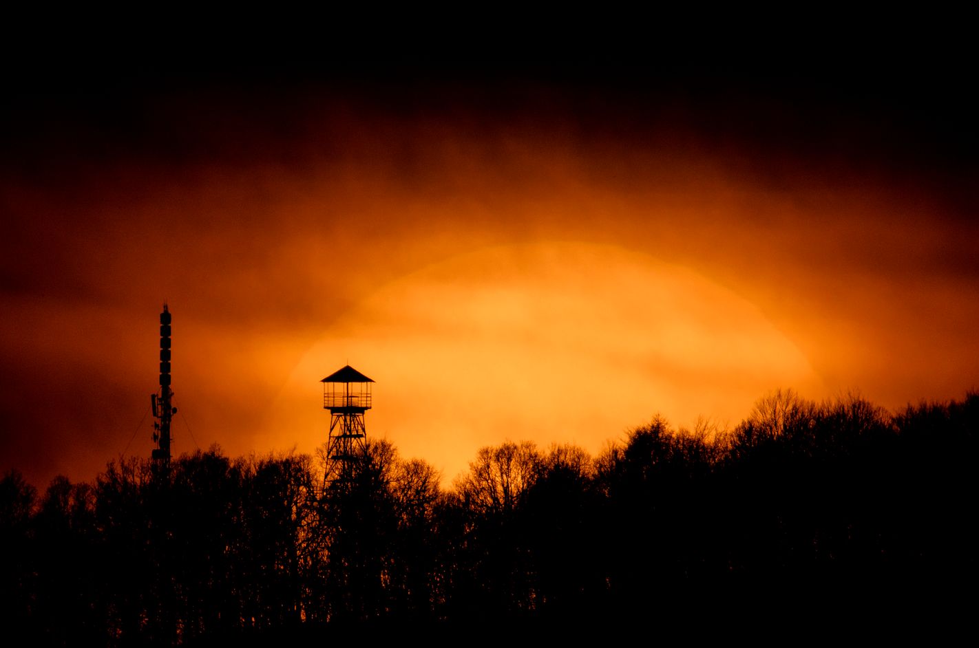 Hier ist die untergehende Sonne hinter dem Aussichtsturmauf auf einem Berg von Karancs zu sehen, der in der Nähe des Somoskő-Bezirks von Salgótarján liegt. Ein schöner Schnappschuß ungarischer Idylle mit gigantischem Sonnenuntergang – That´s Hungary 🙂