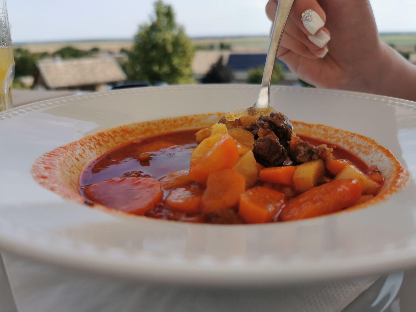 Ein Leckerbissen die Vorspeise: Wildgulaschsuppe… Oder als Hauptspeise der Mangalitzabraten mit leckerer Soße, die Wacholder Wildschweinkeule mit Kräuter-Waldpilzen, Sous Vide Schweinelende in Rosmarinkruste, etc. Die innovative Speisekarte liest sich sehr gut 😉