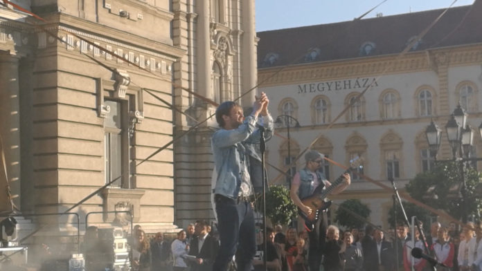 hier haben sie ein Spezialkonzert in Györ anlässlich der EYOF, der Jugendolympiade in Györ gegeben. Coole Location direkt vor dem Rathaus und begeistertes Publikum.