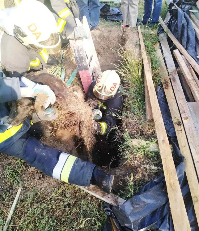 Ein Hund fiel gestern nachmittag in Dabas in eine tiefe Grube. Er erlitt keine keine Verletzungen bei dem Sturz, konnte aber nicht alleine aus der Grube herauskommen. Die Feuerwehr aus Dabas konnten das erschrockene Tier aus der Situation befreien und dem Besitzer übergeben. Tierischer Einsatz mit Happy End!