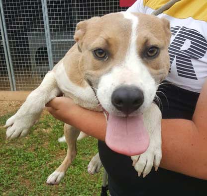 ASHLYN ist eine AmStaff-Mix-Hündin, die im November 2019 geboren wurde und eine Schulterhöhe von etwa 45 cm hat. Die hübsche Hundedame ist sehr verschmust, freundlich, setzt aber auch gerne mal ihren Dickkopf durch, daher braucht sie unbedingt Menschen, die sie zu führen wissen. Ashlyn zeigt Artgenossen gegenüber Dominanz, daher suchen wir für sie ein Zuhause, wo sie alleine die Prinzessin sein darf. Größere, unterwürfige Rüden sind kein Problem für sie. Aufgrund ihrer Rassenmischung wird sie nicht nach Deutschland und Wien vermittelt.