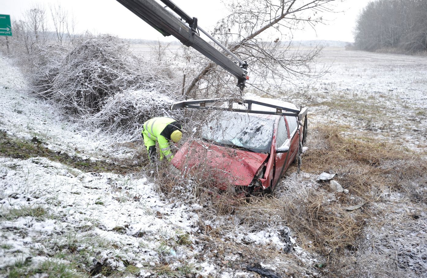 Bergung des Unfallfahrzeuges / Foto: MTI/Mihádák Zoltán