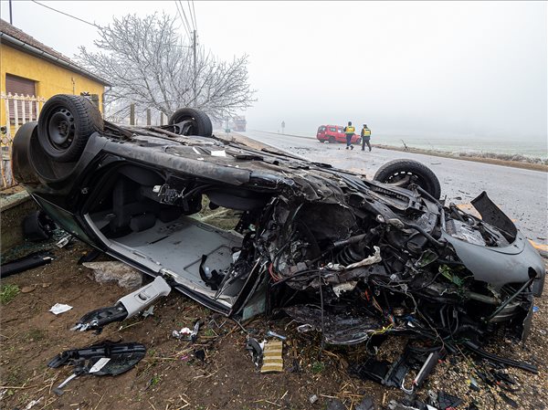 Zwei Autos kollidierten am 16. Januar 2020 auf der Bundesstraße 53 in Tompa (komitat Bács-Kiskun) frontal miteinander.