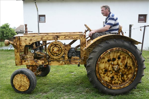 In Ungarn kann man sogar mit einem aus Holz gemachten Traktor die landwirtschaftlichen Arbeiten durchführen. So macht es zumindest István Puskás aus Tiszaörs, wo er mit eigenen Händen das nicht alltägliche Fahrzeug zusammenstellte.