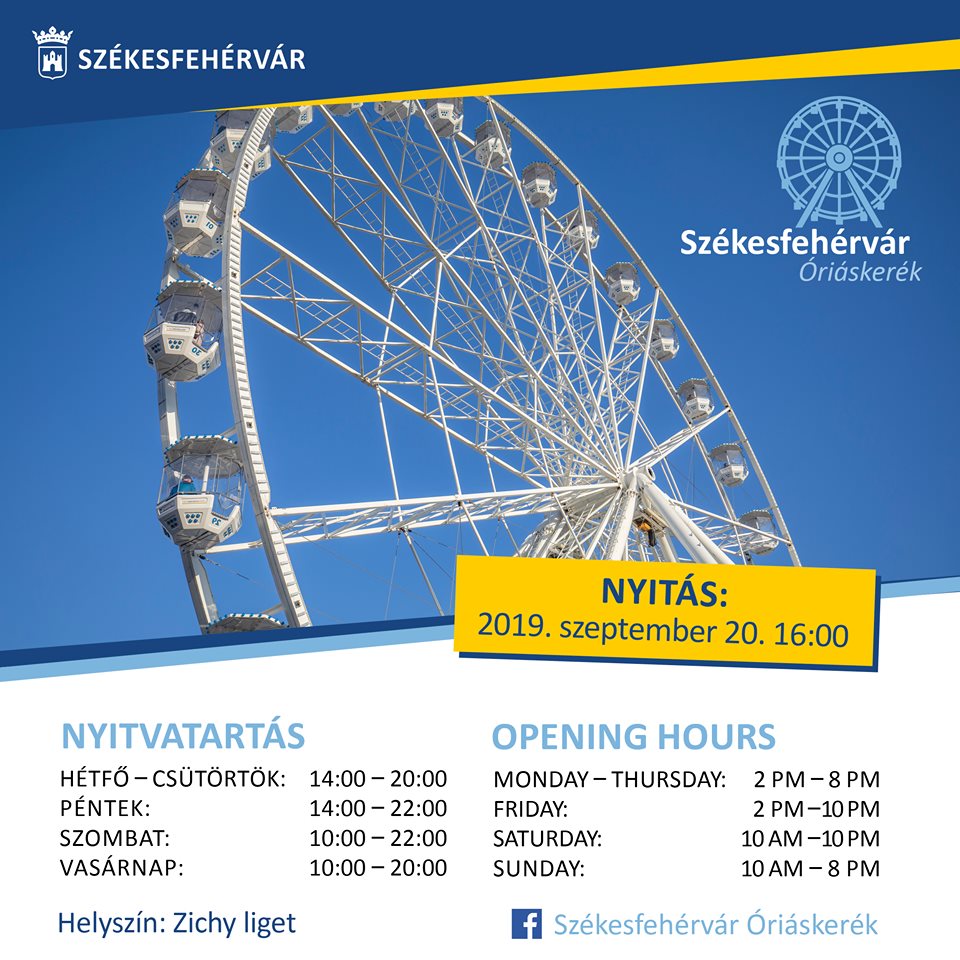 Szeptember huszadikától 35 méter magasból láthatjuk Székesfehérvár városát. A Zichy ligetben felállított látványosság 24 gondolát forgat a hatalmas keréken, és ezek több mint 140 főt tudnak befogadni. A járókelők úgy vélik, az új látványosság igazán nosztalgikus hanguilatot idéz a városnak, hiszen sokan emlékeznek az egykori vidámparkban állt kerékre.