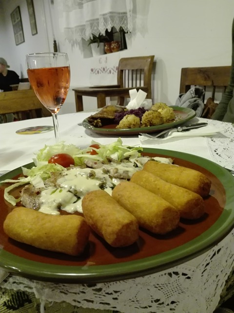Besonders die frischen Fischspeisen sind empfehlenswert. Beim Nachtisch springt sofort die traditionelle Mohnspeise hervor. (Mákos Guba).