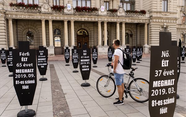 Das Polizeipräsidium des Landkreises Győr-Moson-Sopron stellte Schilder auf mit Namen und Alter der Opfer, die in Verkehrsunfällen ihr Leben verloren haben. Im Rahmen des Programms der Nationalen Sicherheitswoche wurde die Aktion in Győr auf dem Rathausplatz organisiert. Die Polizei ruft immer wieder mit Berichten, Videos oder Aktionen wie diese, die Aufmerksamkeit auf das vorsichtige Fahren und die Wichtigkeit der Unfallprävention auf. Zwar verbessert sich die Statistik der Tödlichen Verkehrsunfälle jedes Jahr, jedoch sind die Zahlen der schwer Verletzten und Todesopfern immer noch hoch. In 2019 gab es in Ungarn 602 tödliche Unfälle und 5485 schwer Verletzte wegen Verkehrsunfällen, im Jahr davor, in 2018 lag die Zahl der Toten bei 633.