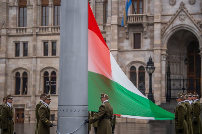 Die Ungarische Flagge wurde am Morgen innerhalb einer Zeremonie am Parlament in Budapest auf Halbmast gehisst. Zur Erinnerung an die Niederlage der Revolution 1956. Die Revolution begann am 23. Oktober 1956 mit einer friedlichen Großdemonstration von Studenten der Universität Budapest, man forderte die demokratische Veränderung. Ungarn trat damals aus dem Warschauer Pakt ausund rief die Sowjetarmee zum Verlassen Ungarns auf.