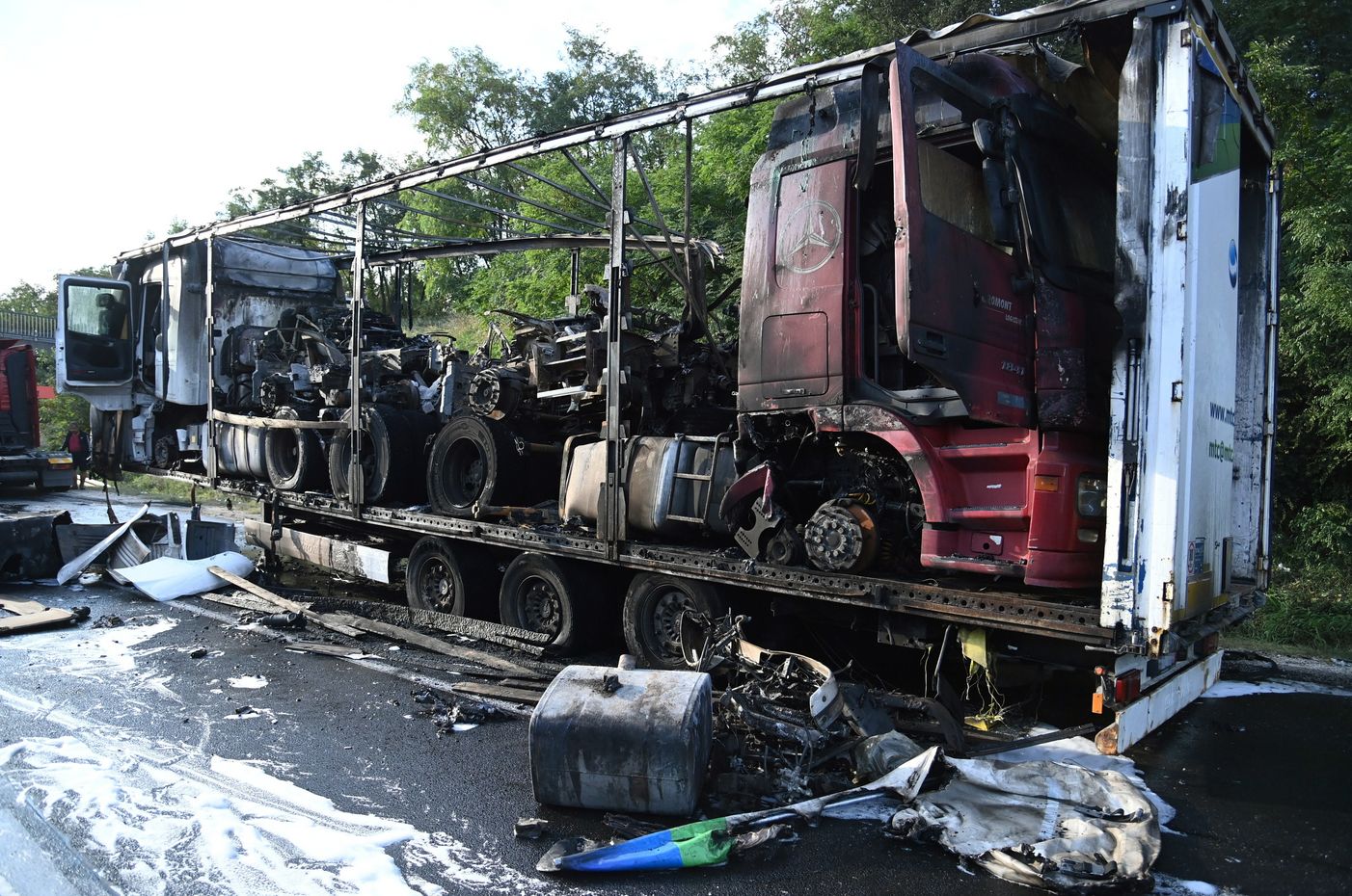 Am Vormittag ist auf der M0 bei Törökbálint ein LKW-Transport komplett ausgebrannt. Der Transporter hatte zwei LKWs „Huckepack“ auf der Ladefläche. Vom Zugfahrzeug aus, hat sich das Feuer weiter auf den Auflieger ausgebreitet und blitzschnell das ganze Gespann in Brand gesetzt. Die Autobahn wurde während der Löscharbeiten komplett gesperrt. Die Bergungsarbeiten dauern an und es kommt weiterhin zu Verkehrsbehinderungen (Stand 12 Uhr). Die Fahrer wurde glücklicherweise nicht verletzt. Es entstand hoher Sachschaden.